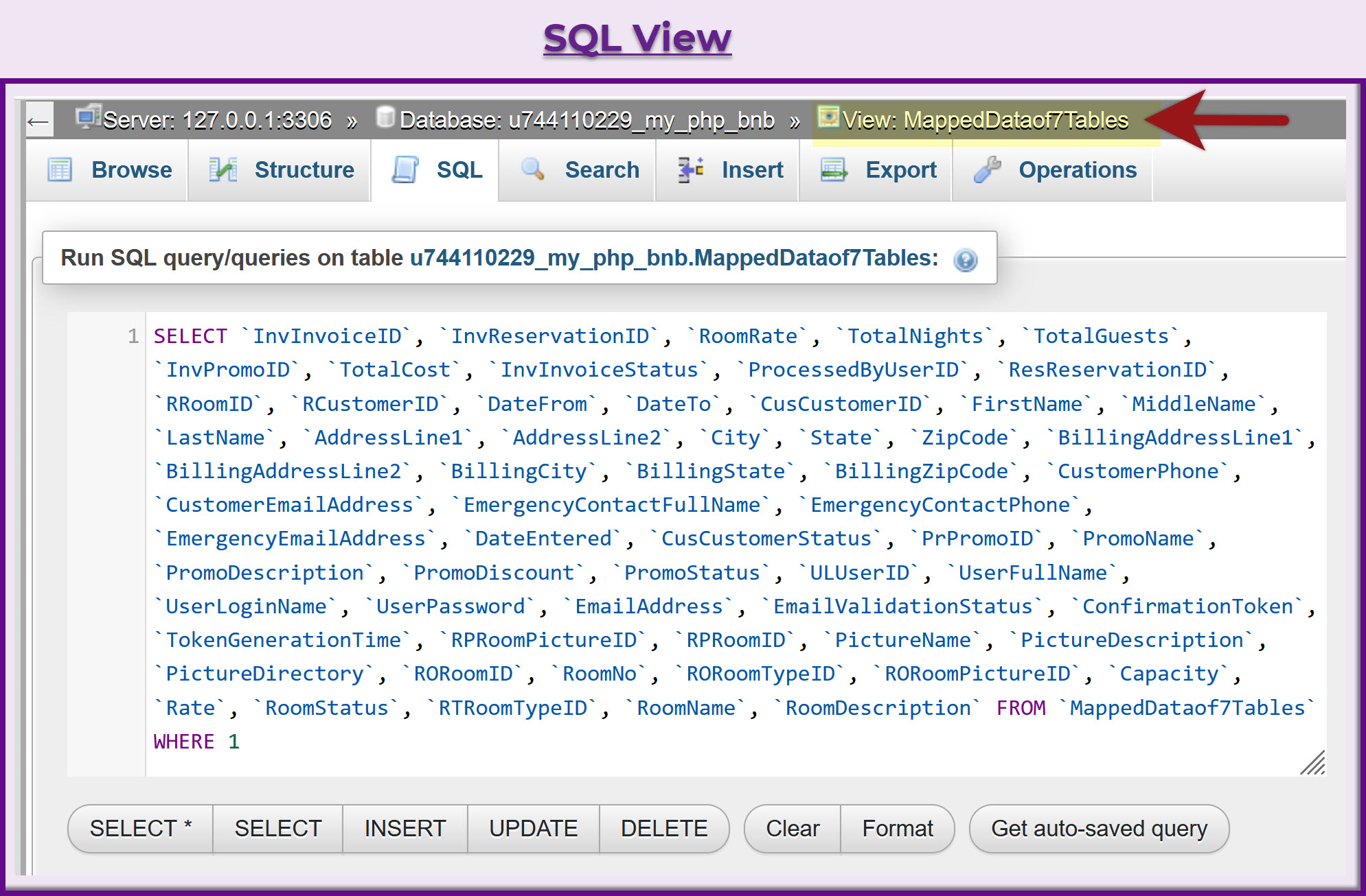 SQL Tables: Customer Information Reservations Invoices Guest Rooms Guest Room Gallery Promotions User Management
