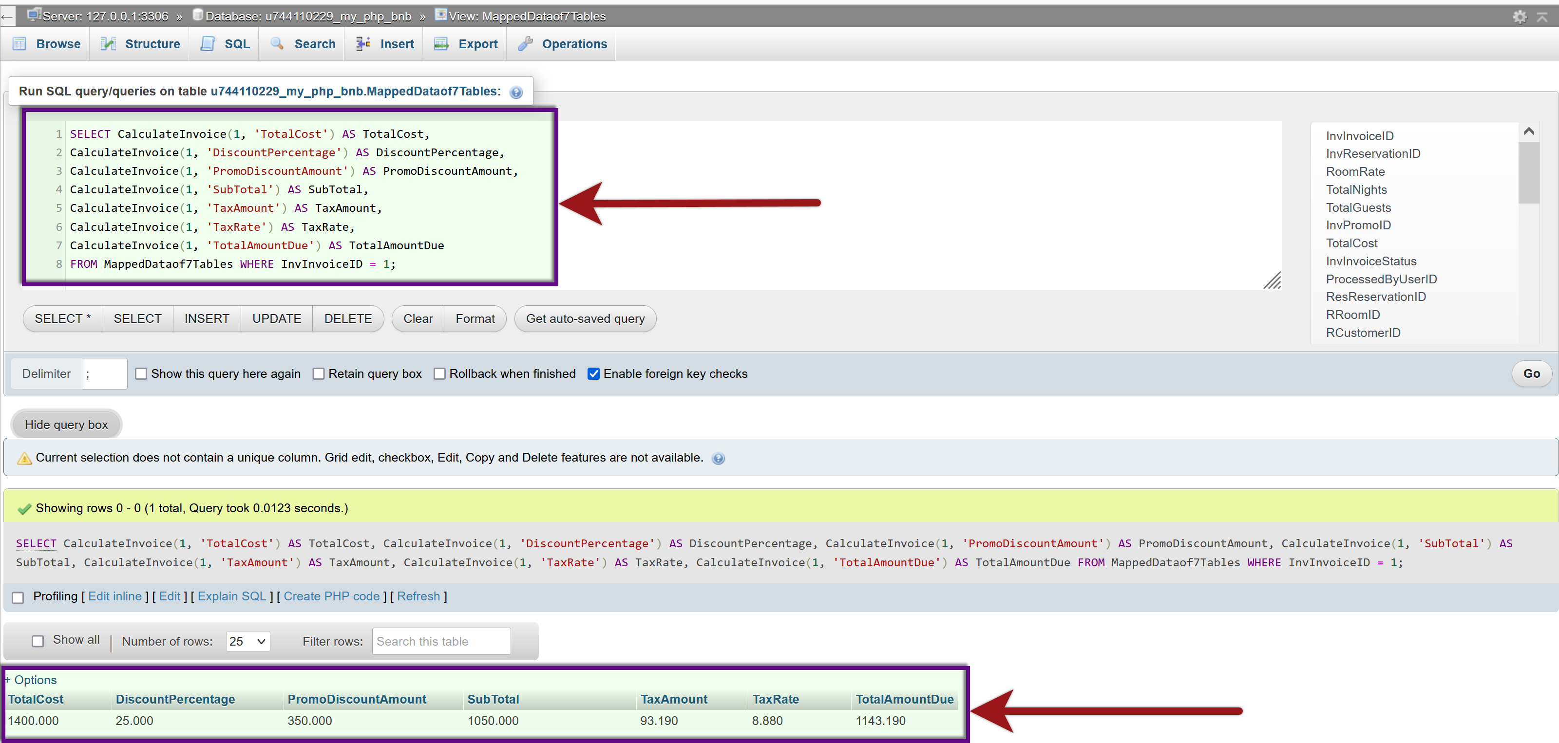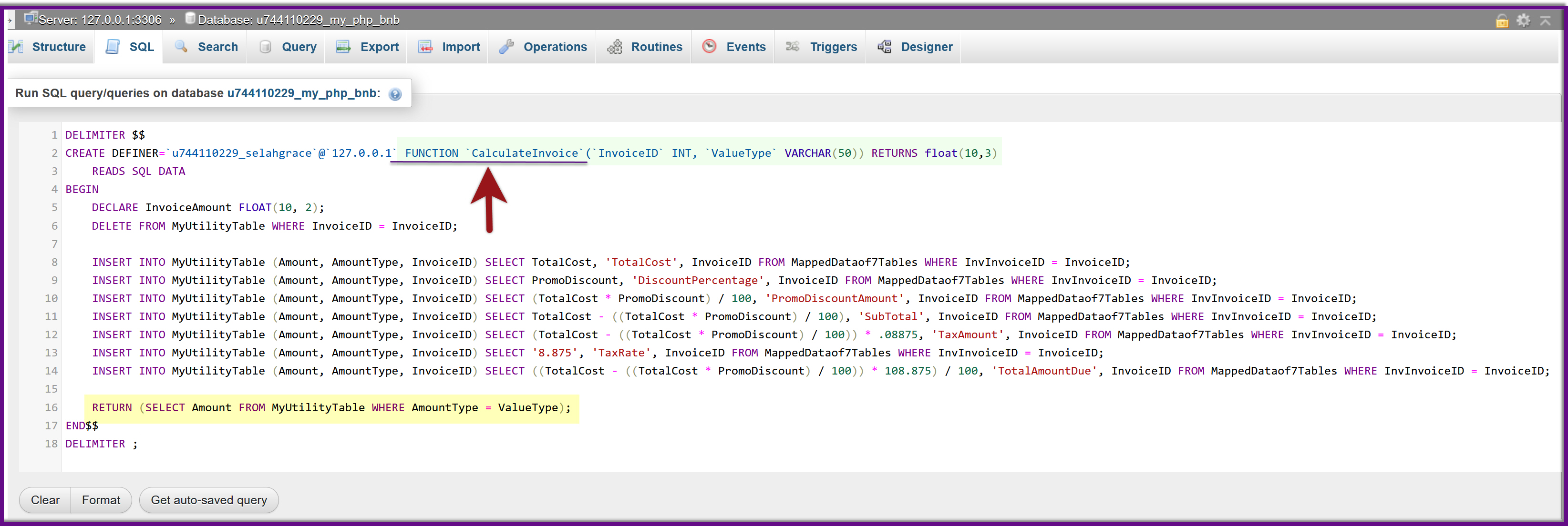 The last 2 images shown below, detail the SQL Function that will be called when accessing the invoice details.