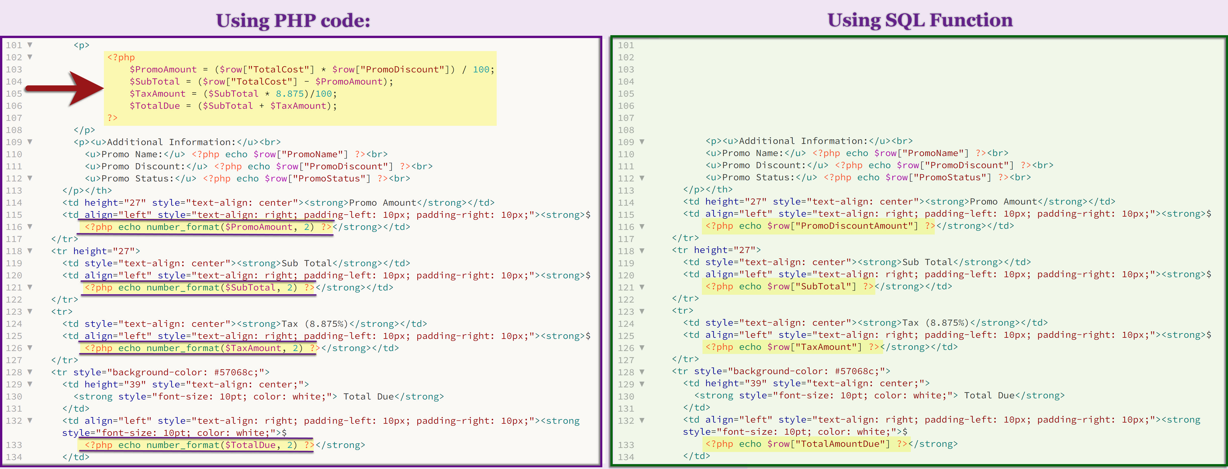 The following is a comparison of the before and after the SQL Function was implemented for these 4 data points.